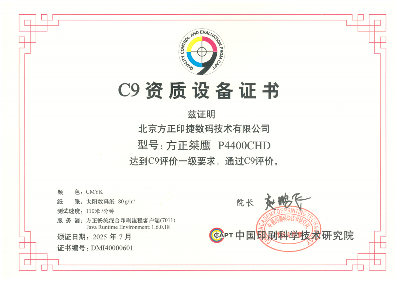 方正桀鷹噴墨印刷機(jī)榮獲C9認(rèn)證!