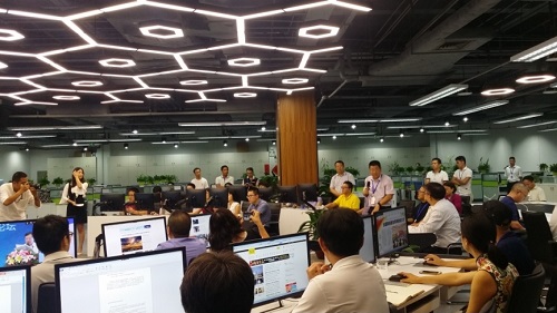在這場(chǎng)全國(guó)晚報(bào)業(yè)的盛典之后,參加本次全國(guó)晚協(xié)年會(huì)的嘉賓們一同參觀了羊城晚報(bào)全媒體采編指揮中心(即“中央廚房”)。作為羊晚報(bào)業(yè)集團(tuán)在推動(dòng)媒體深度融合過(guò)程的一項(xiàng)代表性成果,羊城晚報(bào)的“中央廚房”獲得了報(bào)社社長(zhǎng)劉海陵的高度評(píng)價(jià)與重點(diǎn)推薦,同時(shí),由報(bào)社精心策劃、剪輯的一則關(guān)于“中央廚房”全面介紹的宣傳大片,也在這次參觀交流會(huì)上震撼播出,并收獲媒體同行的肯定與認(rèn)同。